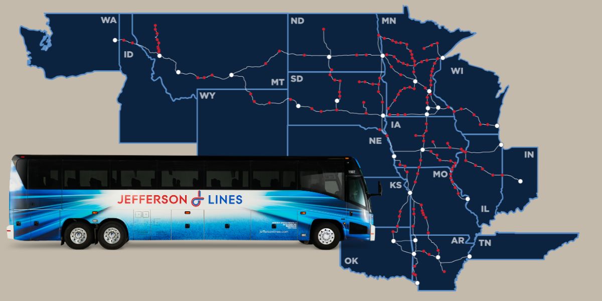 Jefferson Lines has been Your #1 Bus Experience for over 100 Years. We provide daily bus service to 17 states across America’s Heartland with affordable prices and convenient schedules. Through partnerships with other bus companies, we connect you to thousands of destinations across the United States, Canada, and Mexico. We also provide charter services for a variety of group travel in the Minneapolis, MN and Billings, MT areas. We have the experience, professional drivers, and comfortable coaches to provide you or your group with an enjoyable experience. If you’re looking for affordable and convenient bus travel, look no further than Jefferson Lines. Start planning your trip, buy bus tickets, or request a free online charter quote today!